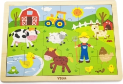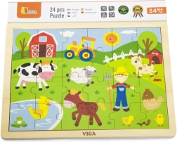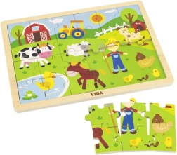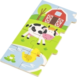 Ova drvena puzzle s farmarskim motivom idealna je za djecu koja se tek upoznaju sa svijetom slaganja i zagonetki. Ilustracija farme je živopisna i privlačna, pozivajući na igru i učenje. Puzzle se mogu