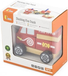 Slagaj pojedine drvene dijelove na podvozje i izradi svoje vatrogasno vozilo. Djeca vježbaju strpljenje i koordinaciju korak po korak.