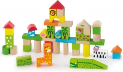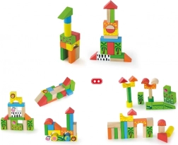 Otkrijte razigranu građevnu igračku koja raste s vašim djetetom. Set drvenih kocaka sa zoo motivima nudi raznoliku paletu oblika i boja, idealnu za prve konstrukcije, sortiranje i razvoj mašte. Uključena je slikovna brošura s planovima slaganja u 3 razine težine, tako da će uživati i početnici i mali graditelji.