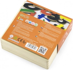 Sadrži 37 komada – znamenke i matematičke simbole – koji se zahvaljujući magnetskom sloju pouzdano pričvršćuju na ploču ili hladnjak. Robusna, višeslojna drvena konstrukcija i glatke lakirane površine osiguravaju dug vijek trajanja i udobno držanje za male ruke.