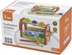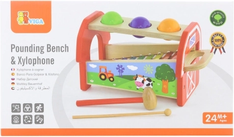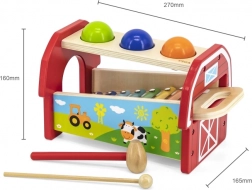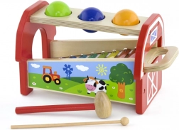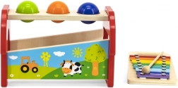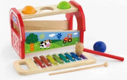 Ova drvena zabijalica s ksilofonom spaja aktivnu igru s glazbenim otkrivanjem. Djeca zabijaju kuglice kroz otvore, prate njihov put, a zatim na šarenim lamelama ksilofona odsviraju jednostavne melodije. Time nenametljivo uvježbavaju preciznost, ritam i strpljenje.