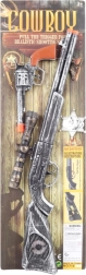 Ovaj zabavni kaubojski set donosi djeci autentičan doživljaj igara na Divljem zapadu. Velika puška duljine oko 50 cm opremljena je nišanom, pištolj ugodno leži u ruci, a zahvaljujući zvučnom efektu pucnja igra djeluje još stvarnije – i to sve bez potrebe za baterijama.