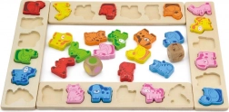 Dvije kocke (u boji i sa životinjama) donose mnogo varijanti igre i potiču prepoznavanje boja i životinjskih motiva.