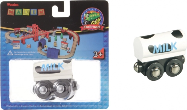 Maxim vagon za mlijeko za drvene željezničke pruge. Potiče maštu, finu motoriku i igru na farmu. Idealan dodatak za djecu od 3 godine.