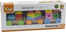Ovaj drveni slagajući vlakić idealan je prvi set za djecu od 18 mjeseci. Šarene kocke i oblici stavljaju se na kolčiće pojedinih vagončića, čime potiču prirodno učenje, strpljenje i maštu. Duljina vlakića oko 31,5 cm osigurava laku manipulaciju i za male ruke.