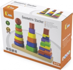 Raznovrsni oblici i boje drvenih dijelova uče djecu prepoznavati i imenovati oblike i boje.