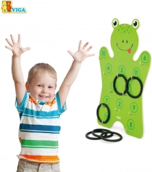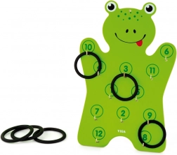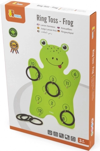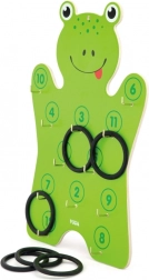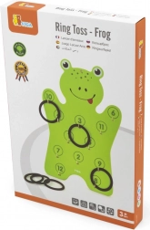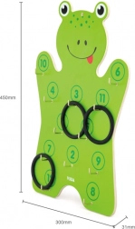 U kompletu je drvena ploča u obliku žabe i 6 prstenova – samo raspakirajte i počnite bacati.