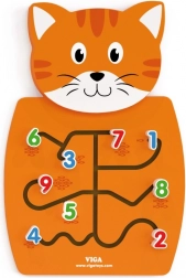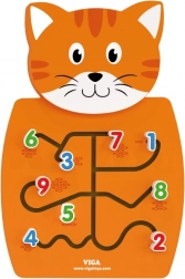 Drvena mačka s labirintima za pomicanje brojeva i razvoj fine motorike.