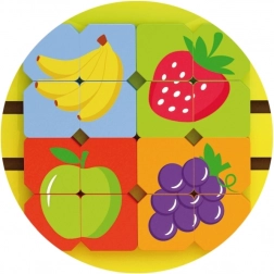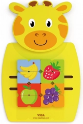 Ploča nudi slagalice koje prikazuju razno voće, koje djeca mogu pomicati i tako otkrivati različite oblike i boje.
