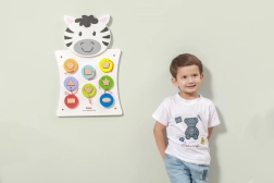 Otkrijte čaroliju drvene zidne ploče Zebra tvrtke VIGA, koja razvija ne samo kreativno razmišljanje i spretnost, već i sposobnost prepoznavanja oblika i boja. Ova je igra prikladna za malu djecu koja kroz zabavu razvijaju svoje osjetilne vještine.