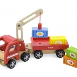 Drveni dizalica VIGA s kontejnerima idealna je igračka kako za vrtić, tako i za dom. Njezina pokretna ruka i magnetski kontejneri ne samo da pružaju sjajnu zabavu, već i razvijaju finu motoriku djece.