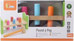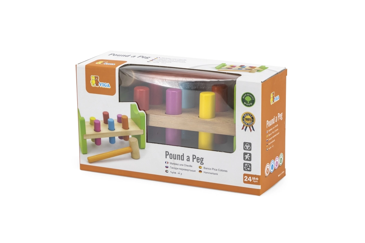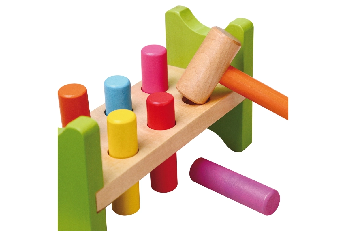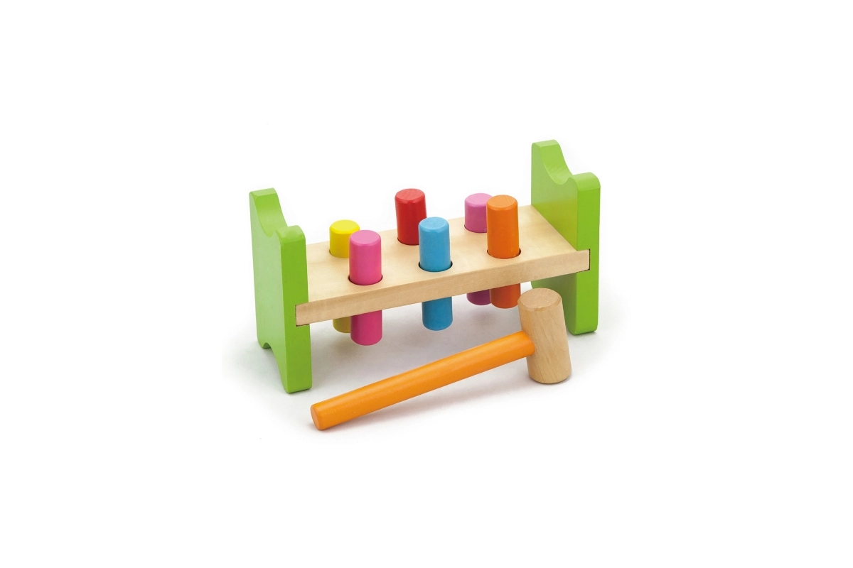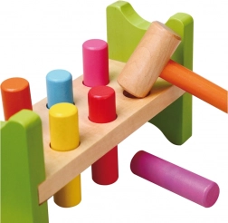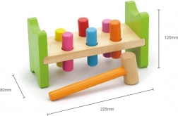 Ova drvena čekić igračka dimenzija cca 22,5 × 12 × 7,7 cm donosi djeci sate smislenog uživanja u igri. Šareni se kolčići zabijaju drvenim čekićem, čime djeca prirodno razvijaju snagu hvata, preciznost pokreta i logičko razmišljanje. Izdržljiva konstrukcija i glatke površine osiguravaju sigurnu uporabu.