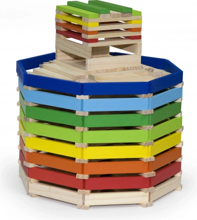 Kocke su lakirane netoksičnim bojama u živim nijansama kako bi osigurale sigurnu igru.