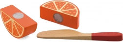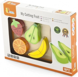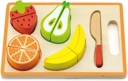 Ovaj kvalitetan drveni set nudi sigurnu igru kuhanja: pojedini komadi voća spojeni su čičkom, zahvaljujući čemu ih djeca mogu više puta “rezati” i ponovno spajati. Zahvaljujući realističnoj izradi djeca uče prepoznavati oblike i boje, vježbaju hvat i koordinaciju te razvijaju maštu u igri kuhanja.