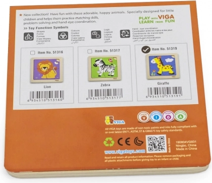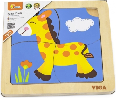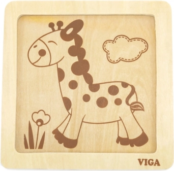 Obogatite dječju igru domišljatim drvenim puzzlama Viga koje uvode djecu u svijet mašte i spoznavanja. Uz pomoć četiri predivno obojena dijela žirafe djeca uče razvijati: