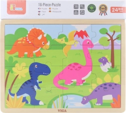 Šarene drvene puzzle VIGA s motivom dinosaura izvrstan su izbor za prvo slaganje. Djeca na zabavan način vježbaju zapažanje, koncentraciju i prostornu maštu, dok robusni drveni dijelovi ugodno pristaju malim rukama.