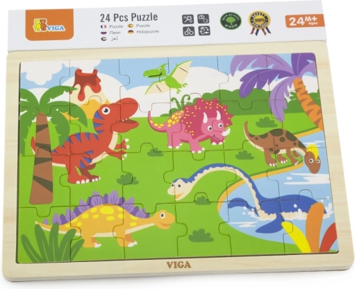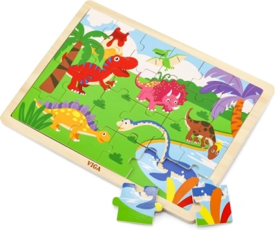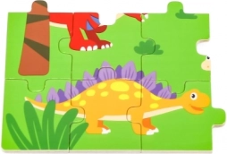 Drvene puzzle s simpatičnim motivom dinosaura razveselit će sve male zaljubljenike u prapovijest. Zahvaljujući 24 dijela, puzzle su izvrstan izbor za prvo samostalno slaganje, razvoj koordinacije oko–ruka i strpljenja. Kvalitetna izrada i glatki rubovi osiguravaju sigurnu i ugodnu igru.