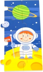 Drvene puzzle VIGA sa svemirskom temom donose djeci od najranije dobi radost otkrivanja. Šarene ilustracije s raketom, astronautom i planetima prirodno potiču prepoznavanje oblika i boja te razvoj oko–ruka koordinacije. Složena slagalica dimenzija je oko 27,5 × 20 cm, pa se odlično uklapa na stol i u dječji kutak.