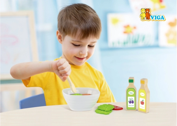 Djeca mogu miješati listove, dodavati povrće i posluživati kao u pravoj kuhinji – savršeno za razvoj mašte.