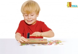 Zabijanje dijelova čekićem vježba koordinaciju oko–ruka, koncentraciju i logičko razmišljanje u duhu Montessori principa.