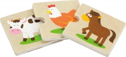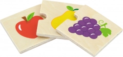 Svaki je dio od čvrstog drva s glatkim rubovima i izražajnim, šarenim ilustracijama koje potiču vizualnu percepciju i motiviraju na daljnje istraživanje. Set je prikladan za kućnu igru i vrtiće – idealan za aktivnosti poput razvrstavanja, imenovanja i zajedničkog rješavanja zadataka.