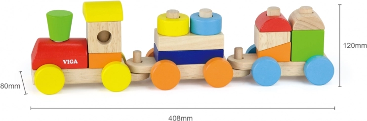 Otkrijte bezvremensku drvenu igračku koja spaja zabavu i učenje. Slagajući vlak VIGA sastoji se od lokomotive i dvaju vagončića s obojenim kockama koje se mogu slobodno preslagivati. Djeca uvježbavaju koordinaciju oko–ruka, logičko razmišljanje te prepoznavanje boja i oblika.