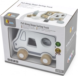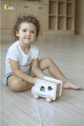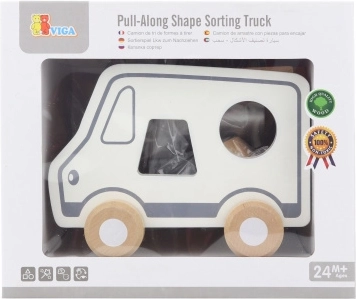 Ova drvena vučna igračka u obliku kamiona spaja dvije omiljene aktivnosti – povlačenje na uzici i umetanje oblika. Djeca razvijaju prepoznavanje oblika i prostornu percepciju, dok uživaju u kretanju i maštovitoj igri s lijepim kamiončićem.