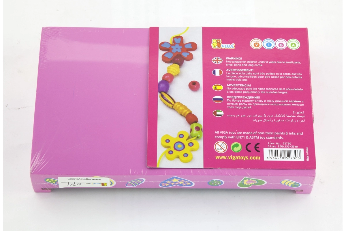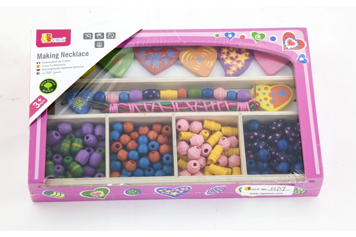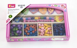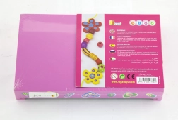 U paketu su raznobojne drvene perle i uzice, tako da djeca mogu početi izrađivati narukvice i ogrlice odmah nakon otvaranja.