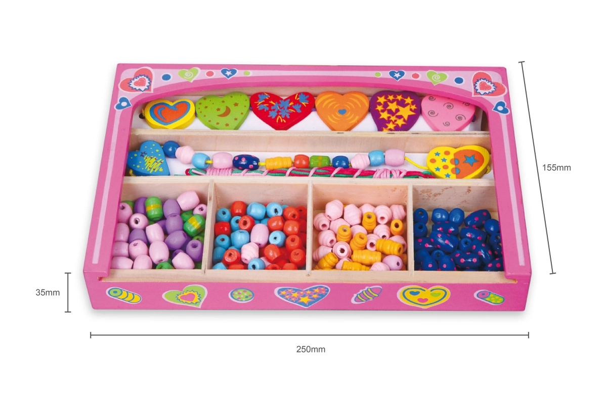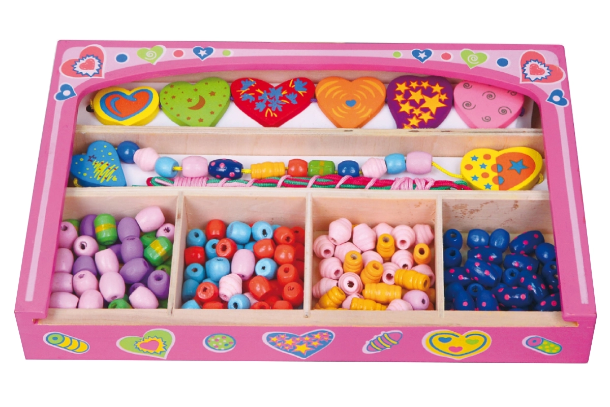 Perle različitih veličina i oblika – uključujući srca i zvjezdice – nadahnjuju djecu na stvaranje jedinstvenog nakita i razvijaju njihovu maštu.