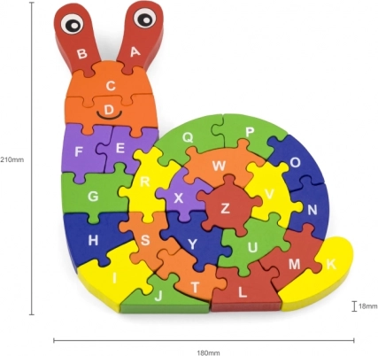 Složite ovog šarenog puža, svaki njegov dio označen je slovom abecede. Ova zabavna i edukativna slagalica ne samo da potiče učenje slova, već i poboljšava finu motoriku i prostornu orijentaciju.