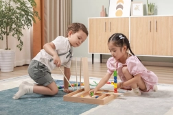 Ova pametna Montessori igra podržava učenje kroz igru: djeca nižu i slažu perle na štapiće redoslijedom koji određuju kartice s uzorcima. Na zabavan način razvijaju koordinaciju oko–ruka, usredotočenost i strpljenje, dok učvršćuju znanje o bojama, oblicima i sekvencama.