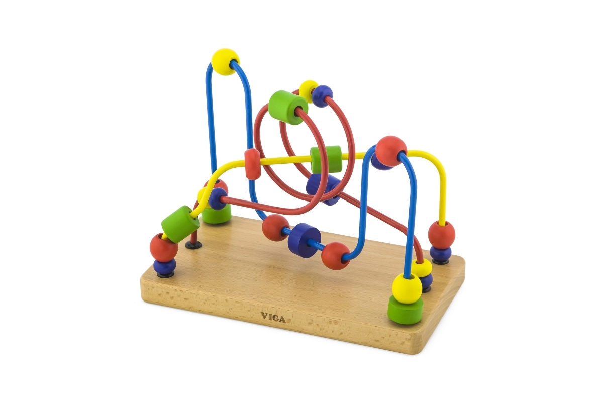 Šarene perlice na vijugavim stazama motiviraju djecu na pomicanje i razvrstavanje, čime razvijaju hvat, koordinaciju oko–ruka i strpljenje.