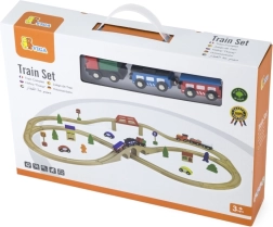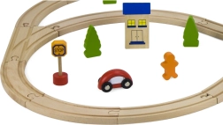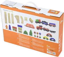 Složite vlastiti svijet na tračnicama! Drvena željeznička pruga s ukupnom duljinom i rasporedom staza omogućuje djeci gradnju raznolikih ruta, prelazak mostova i povezivanje prometa s gradom zahvaljujući priloženim autićima i dodacima. Kvalitetna drvena izrada je izdržljiva i ugodna za držanje.