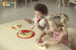 Različiti drveni dodaci (npr. gljive, paprike, rajčice) potiču maštu te učenje boja i oblika.
