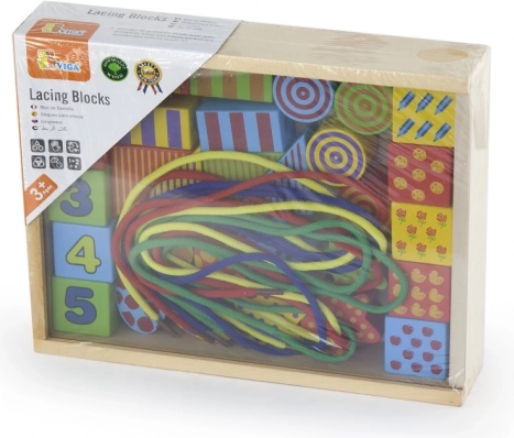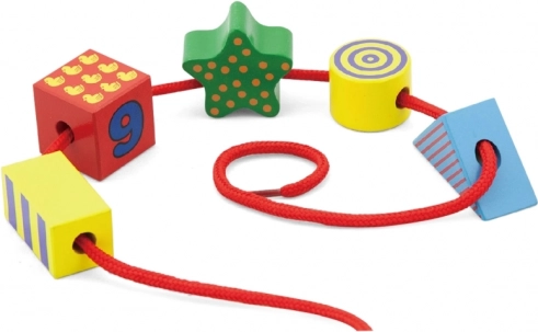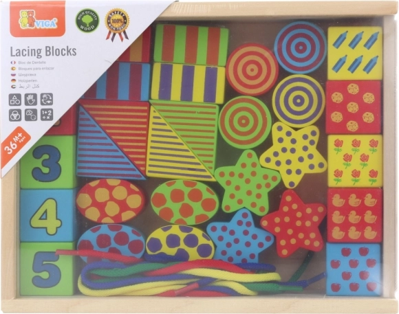 Otkrijte kreativnu igru s VIGA drvenim setom za nizanje – kutijom punom šarenih oblika za nizanje na uzice poput perlica. Potiče finu motoriku, koordinaciju ruka–oko i učenje boja i oblika. Dijelovi od kvalitetnog drva s netoksičnim bojama i velikim dimenzijama za sigurno držanje.