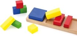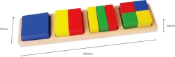 Drveni matematički oblici idealna su igračka za malu djecu koja žele unaprijediti svoje motoričke vještine i istovremeno učiti osnove matematike. Igračka sadrži 10 dijelova različitih boja: crvene, plave, žute i zelene, koje djeca mogu lako razvrstavati i slagati.