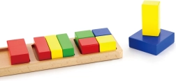 Zahvaljujući robusnoj drvenoj konstrukciji, ova igračka pruža dugotrajnu izdržljivost i sigurnost tijekom igre. Šareni blokovi lako se umeću u unaprijed određene otvore na drvenoj podlozi, što djecu uči prostornom opažanju.