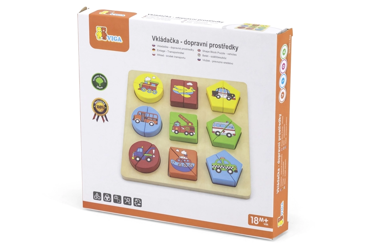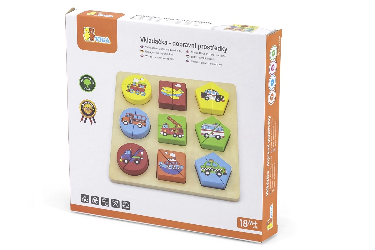 Drvene slagalice s umetkom - promet u češkoj kutiji