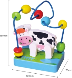 Drveni labirint s kravicom privlači pažnju djece svojim raznobojnim dizajnom i simpatičnom kravicom.