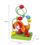 Drveni labirint sa psićem idealan je za razvoj fine motorike i koordinacije ruka-oko kod djece. Ovaj labirint s neonskim perlicama na metalnim žicama osigurava sate zabave te uči djecu koncentraciji i strpljenju. Sa šarenom bazom i veselim psićem igračka je ne samo praktična, već i estetski privlačna.