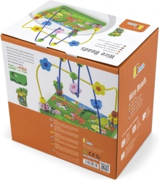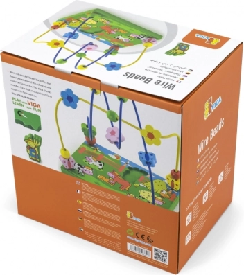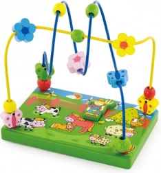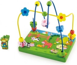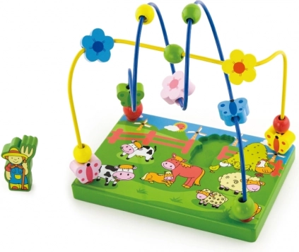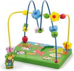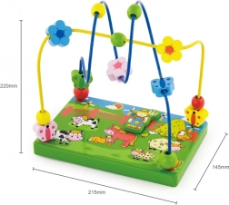 Otkrijte šareni drveni labirint s perlicama na temu farme koji će djecu oduševiti pomicanjem perlica po metalnim žicama i igrom s magnetskom figuricom. Stabilna drvena podloga s ilustracijama farme potiče maštu te uči djecu usredotočenosti i koordinaciji pokreta.