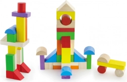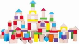 Kreativna drvena građevna set s 100 dijelova u praktičnoj kantici. Šarene kocke različitih oblika razvijaju finu motoriku i maštu, a dio pakiranja je i ilustrirana brošura. Dob 2+.