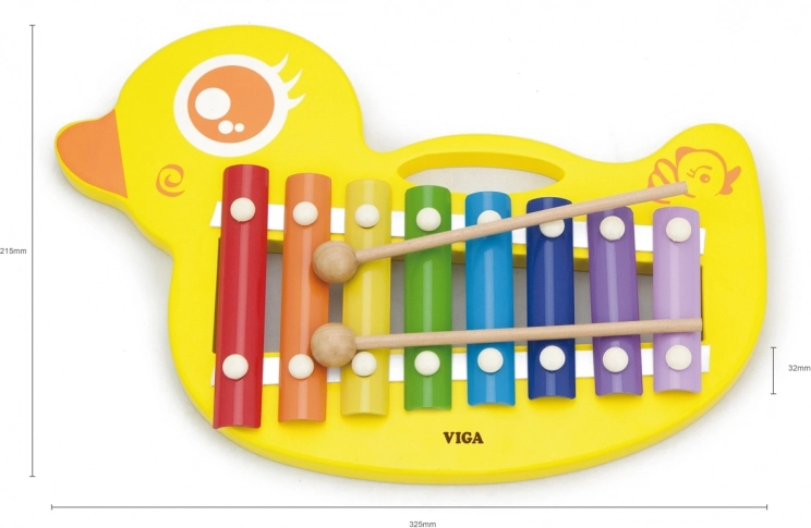 Šareni drveni ksilofon u obliku pačića za djecu od 18 mjeseci. Razvija glazbeni osjećaj i motoriku, 8 metalnih lamela, čvrsta konstrukcija i ugodan zvuk.