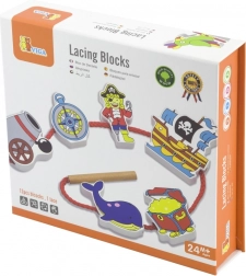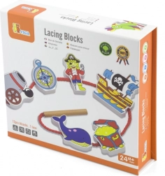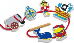 Otkrijte čar piratske avanture s kvalitetnim drvenim setom za nizanje. Šareni blokovi s motivima poput pirata, broda ili sidra motiviraju djecu na stvaranje i prirodno pomažu trenirati hvat, koncentraciju i strpljenje. Zahvaljujući nizanju na uzicu djeca vježbaju preciznost i koordinaciju, a pritom se odlično zabavljaju.