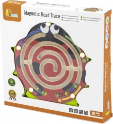 Ovaj kvalitetni drveni magnetski labirint bubamara djeci nudi šarolik svijet otkrivanja. Priloženom magnetskom olovkom pomiču kuglice po promišljeno osmišljenim stazama, čime prirodno jačaju hvat, vježbaju koordinaciju oko–ruka i poboljšavaju koncentraciju. Čvrsta drvena konstrukcija i zatvoren dizajn osiguravaju sigurnu igru bez odvojenih dijelova.