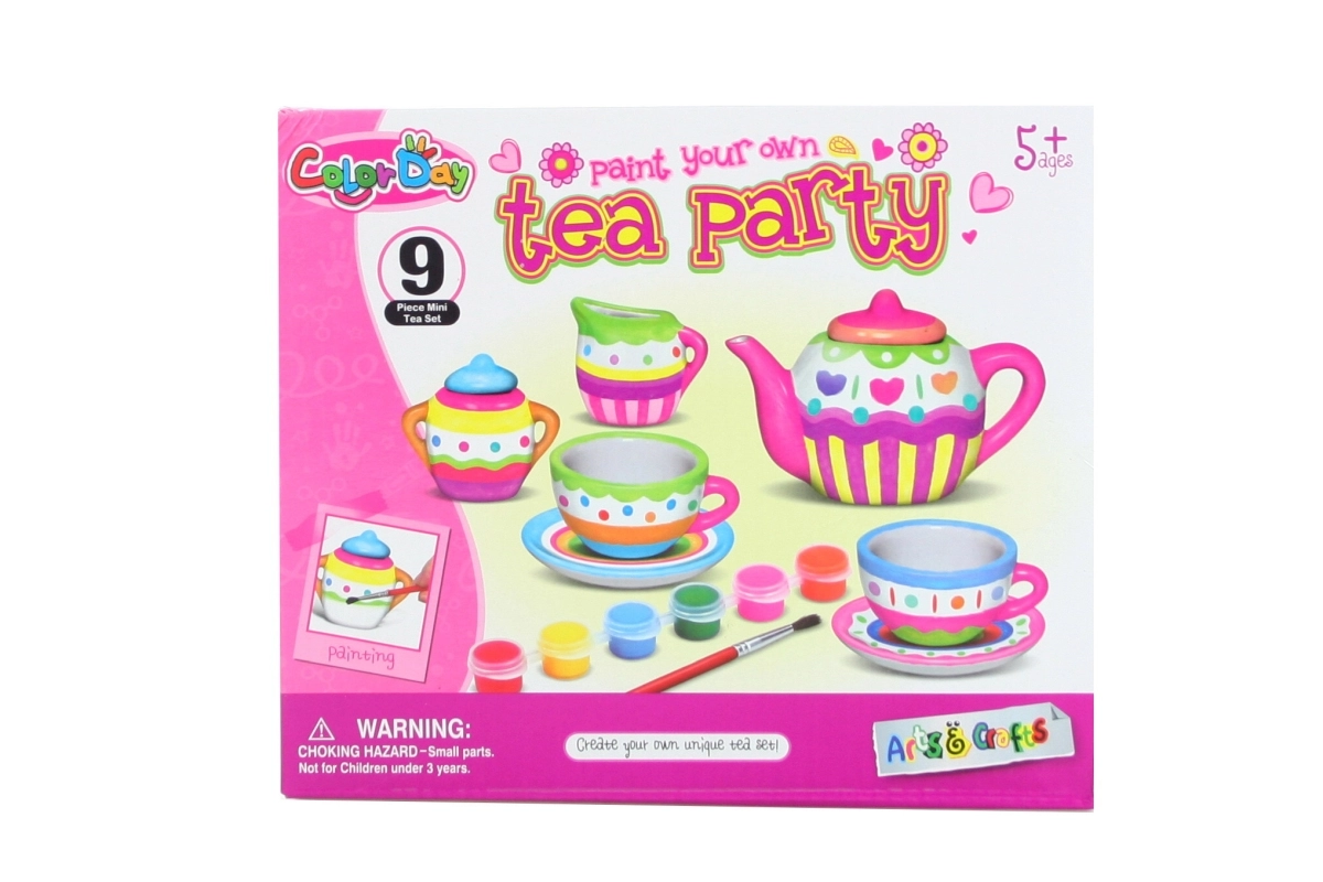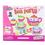 Stvorite jedinstven dječji čajni set vlastitim bojama! Set sadrži sve što vam treba za stvaranje – keramičku čajnicu, šalice, vrč, posudicu za šećer te boje s kistom. Idealno za razvoj kreativnosti i fine motorike. Jednostavno za korištenje, kompletan set, prikladno od 3 godine.