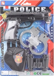 U pakiranju se nalazi pištolj duljine cca 19,5 cm s futrolom, plastične lisice za realističnu igru, praktični dvosjed za promatranje te stilska značka za potpuni doživljaj policijske uloge. Set je namijenjen djeci od 3 godine i odličan je poklon za male ljubitelje akcijskih igara.