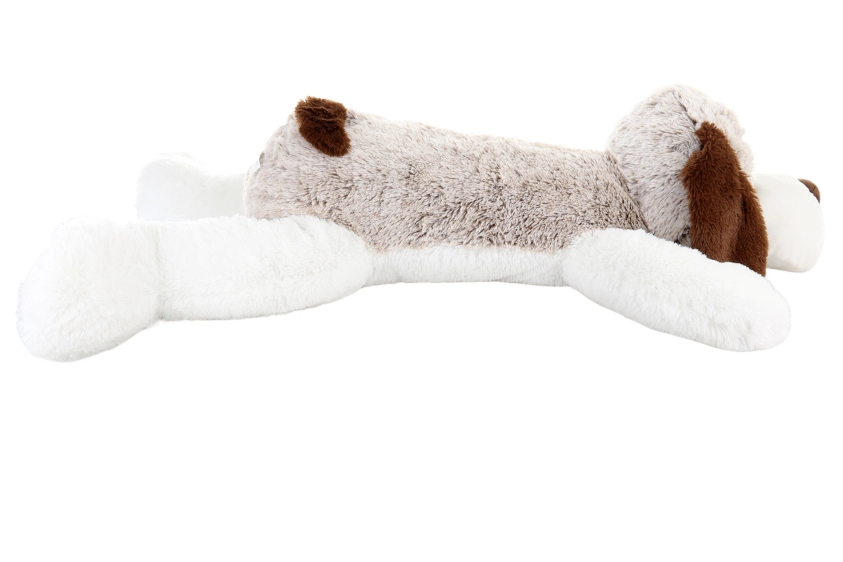 Ovaj veliki ležeći plišani psić razveselit će svako dijete i ljubitelje životinja. Ugodno je mekan, nježan na dodir i zahvaljujući dimenziji od 100 cm savršeno služi kao mazni prijatelj, podglavnik ili dekorativni dodatak za krevetić ili dječji kutić. Kvalitetna izrada i fini detalji osiguravaju sigurno i udobno igranje i za one najmlađe.