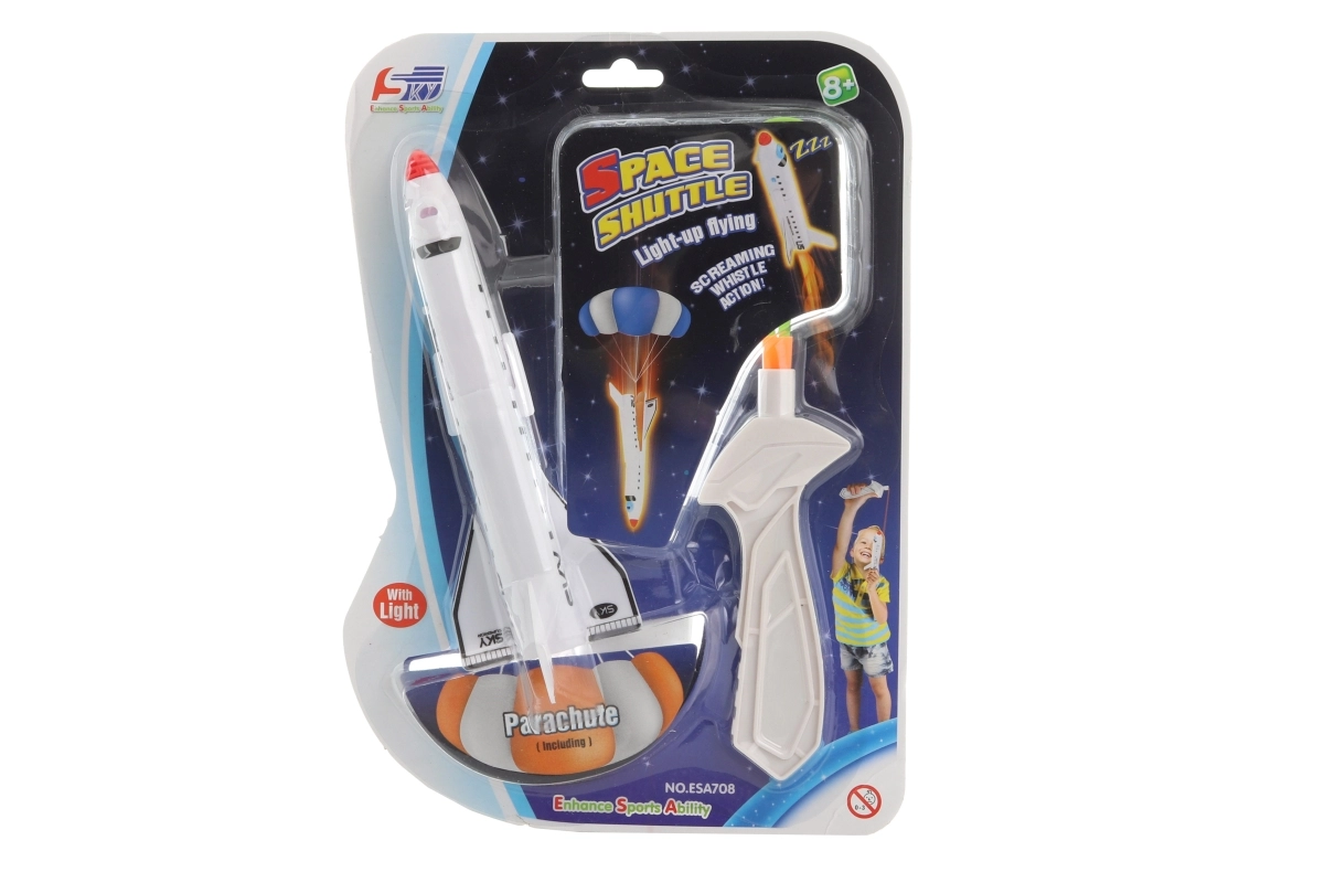 Lansirni svemirski shuttle sa svjetlom. Raketa tijekom leta zviždi i svijetli. Napajanje 2x gumbasta baterija (AG3) – uključene u pakiranju. Dimenzija rakete cca 20,5 cm. Dimenzije pakiranja cca 29,5 x 21 x 5 cm. Dob 8+