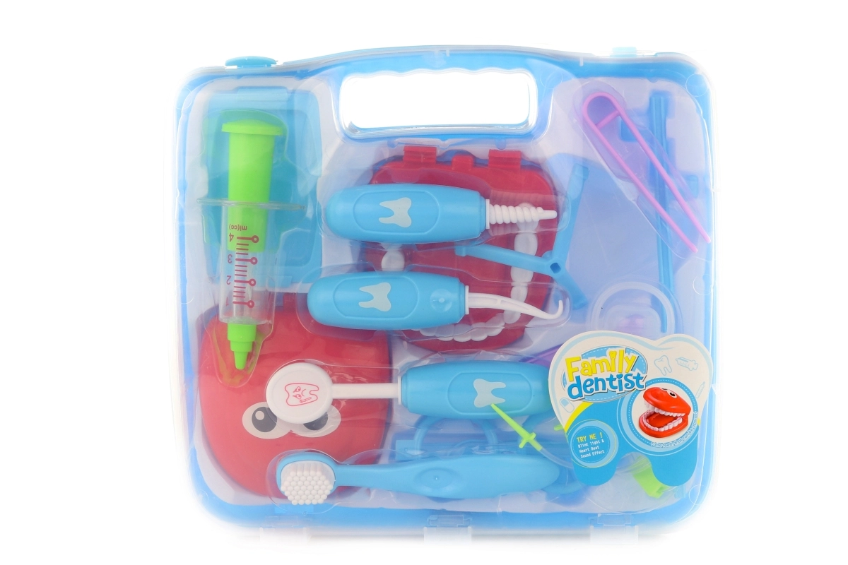 Ovaj stomatološki set u koferu donosi djeci sve potrebno za igru ordinacije – od otvarajućih zubi do alata poput injekcije, zrcalca i "bušilice". Zahvaljujući bogatoj opremi djeca vježbaju finu motoriku, komunikaciju i strpljenje te na zabavan način usvajaju pravilne navike brige o zubima.
